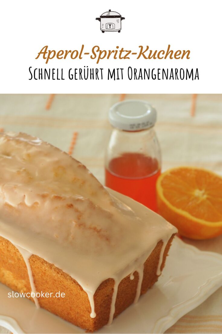 Banner Blog-Event CCXXVII - Zitruszeit! (Einsendeschluss 15. März 2026)Seid ihr auch so große Aperol-Spritz-Fans? Für mich ist das DER Sommerdrink – nicht zu alkoholisch (wenn man entsprechend mischt! ), nicht zu süß, genau richtig herb, aber nicht bitter wie Campari. Aperol Spritz gibt es hier auf dem Blog als raffiniertes Dessert (Orangenmousse mit Aperol-Spiegel), auf meinem anderen Blog USA kulinarisch als Geschenk aus der Küche (Aperitif-Sirup alkoholfrei) und jetzt auch als Kuchen! Und die Aperol-Cupcakes sind auch schon in Arbeit… Aber erst einmal melde ich diesen Orangen-Kuchen zum Blogevent Zitruszeit auf Zorras Kochtopf-Blog. Mit-Gastgeberin ist die liebe Susanne Magentratzerl, die schreibt: “Zitrusfrüchte haben jetzt Hochsaison und bringen mit ihrem Duft und ihren Farben Licht in die kurzen Tage – und das Vitamin C können wir gerade auch alle gut brauchen.” Recht hat sie – auch wenn in meinem Kuchen der Vitamingehalt ja nun nicht der größte sein dürfte…